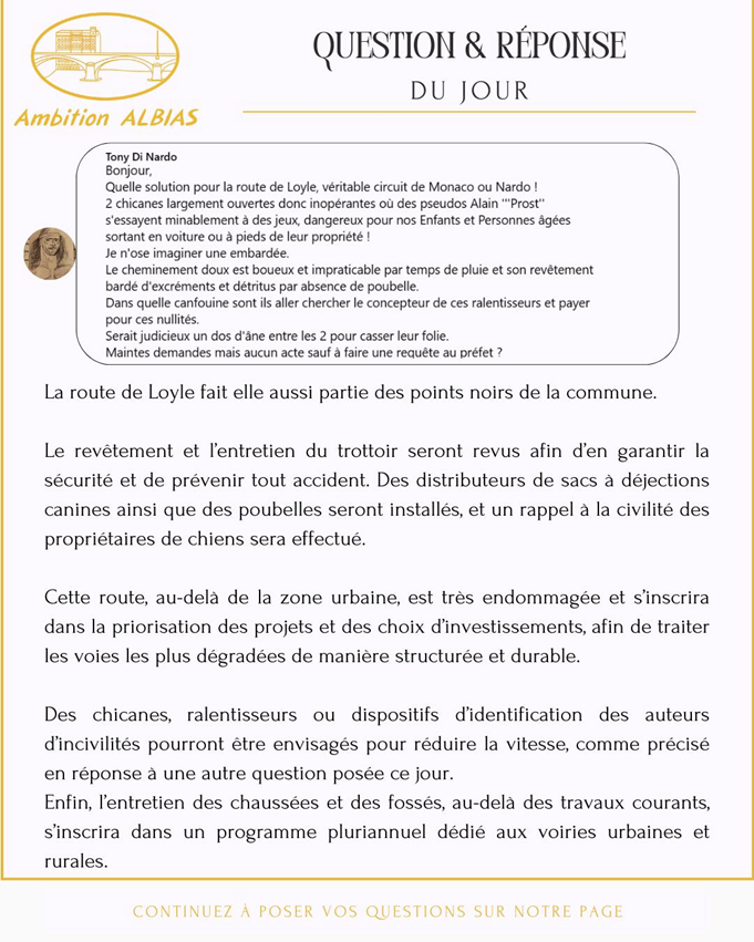 Question n°2 Route de Loyle - Vitesse excessive - Entretien
